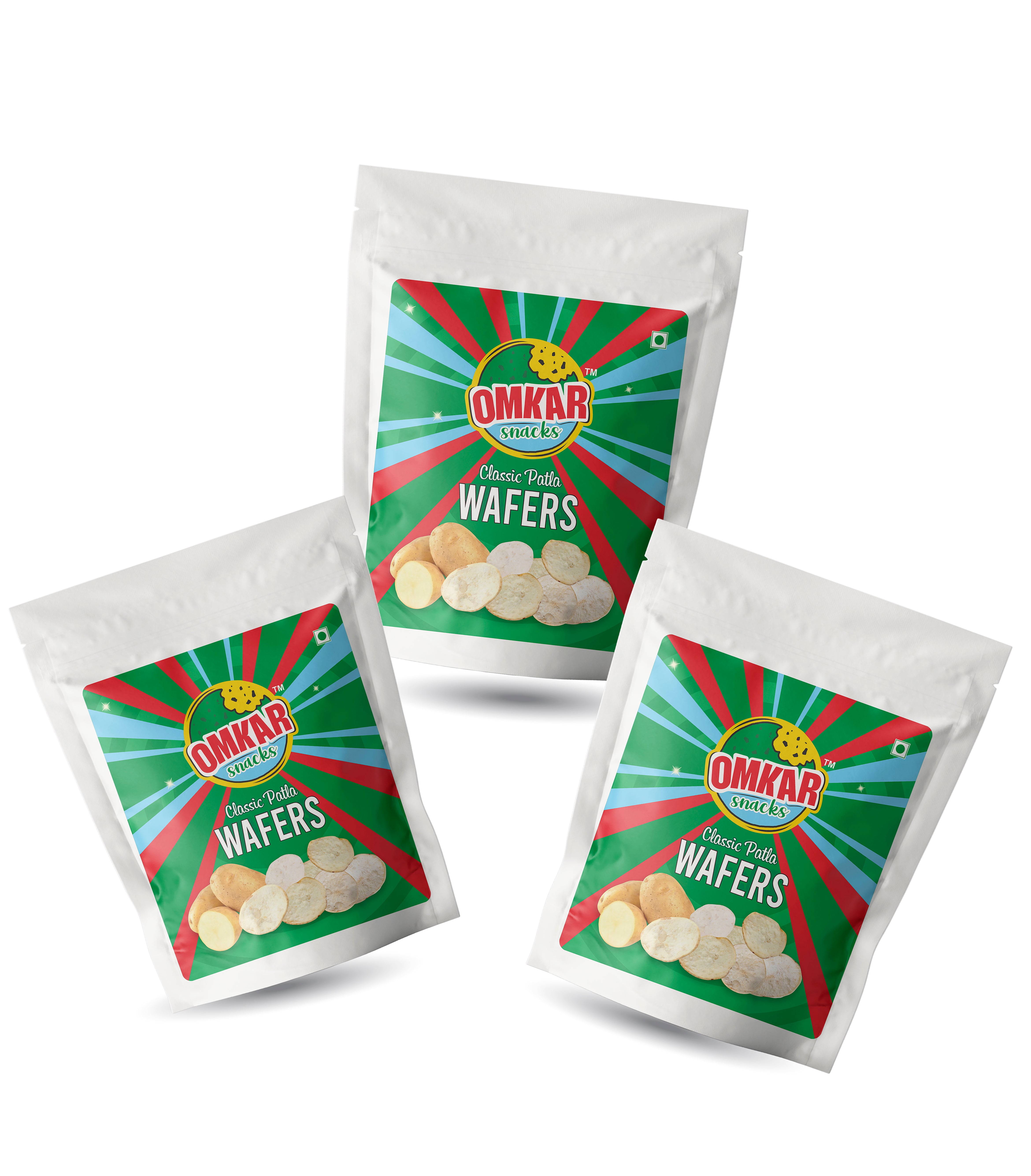 These aren’t just any wafers. These are Omkar’s Classic Patla Wafers sliced thinner than your patience in Mumbai traffic, fried to golden perfection, and seasoned with just the right amount of salt to make your tongue tap dance with joy.
